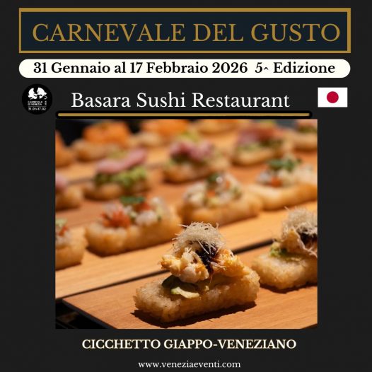 Per il Carnevale del Gusto 2026, Basara Sushi Restaurant – Aperitivo Studentesco firma un’inedita creazione: il Cicchetto Giappo-Veneziano 🇯🇵🇮🇹