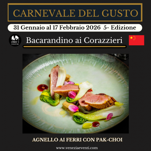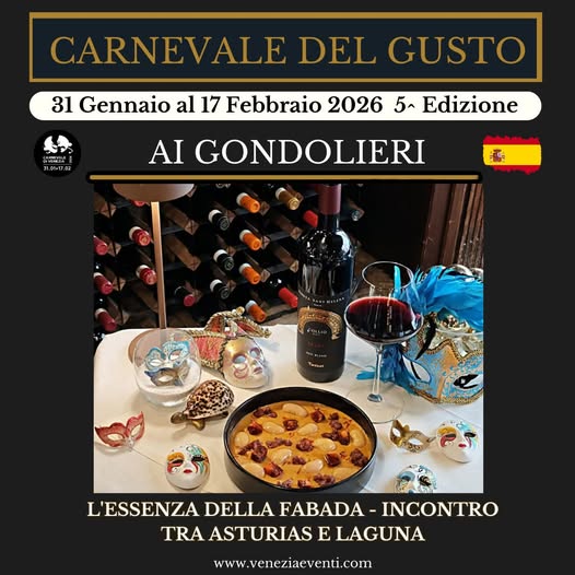 📅 Dal 31 gennaio al 17 febbraio 2026 torna il Carnevale del Gusto. Il concept 2026 è “I Sapori delle Nazioni”: Venezia celebra le cucine del mondo, reinterpretate in chiave veneziana.