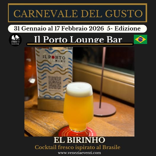 Per il Carnevale del Gusto 2026, IL PORTO LOUNGE BAR presenta un cocktail fresco e sorprendente ispirato al Brasile. Un twist originale a base di cachaça, verbena e limone, completato da una spuma di birra che ne esalta carattere e leggerezza. Un drink che celebra l’incontro tra i due alcolici più consumati in Brasile, reinterpretati in chiave contemporanea. L’estetica richiama una birra appena spillata, mentre al palato si rivela agrumato, aromatico e irresistibilmente rinfrescante.