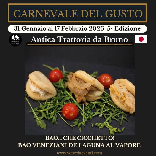 Per il Carnevale del Gusto 2026, la Trattoria Da Bruno firma un’inedita creazione dello Chef Raffaele Pepe: Bao… che cicchetto! – Bao veneziani de Laguna al vapore.