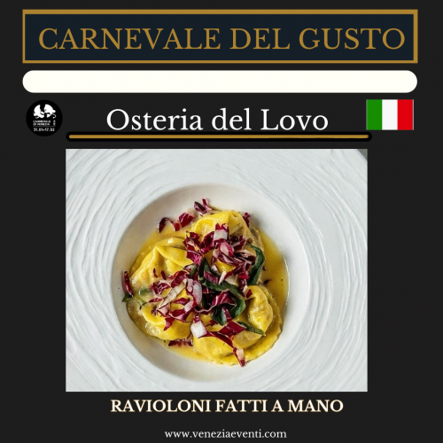 Per il Carnevale del Gusto 2026, l’Osteria del Lovo porta in tavola una creazione semplice ma fatta come si deve: Ravioloni fatti a mano, con ripieno di radicchio fresco e ricotta, un incontro tutto italiano tra delicatezza e carattere. Pasta tirata a mano, ingredienti veri e un gusto che parla chiaro.