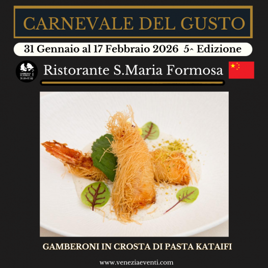 Per il Carnevale del Gusto 2026, il Ristorante S. Maria Formosa presenta un’inedita creazione: Gamberoni in crosta di pasta kataifi